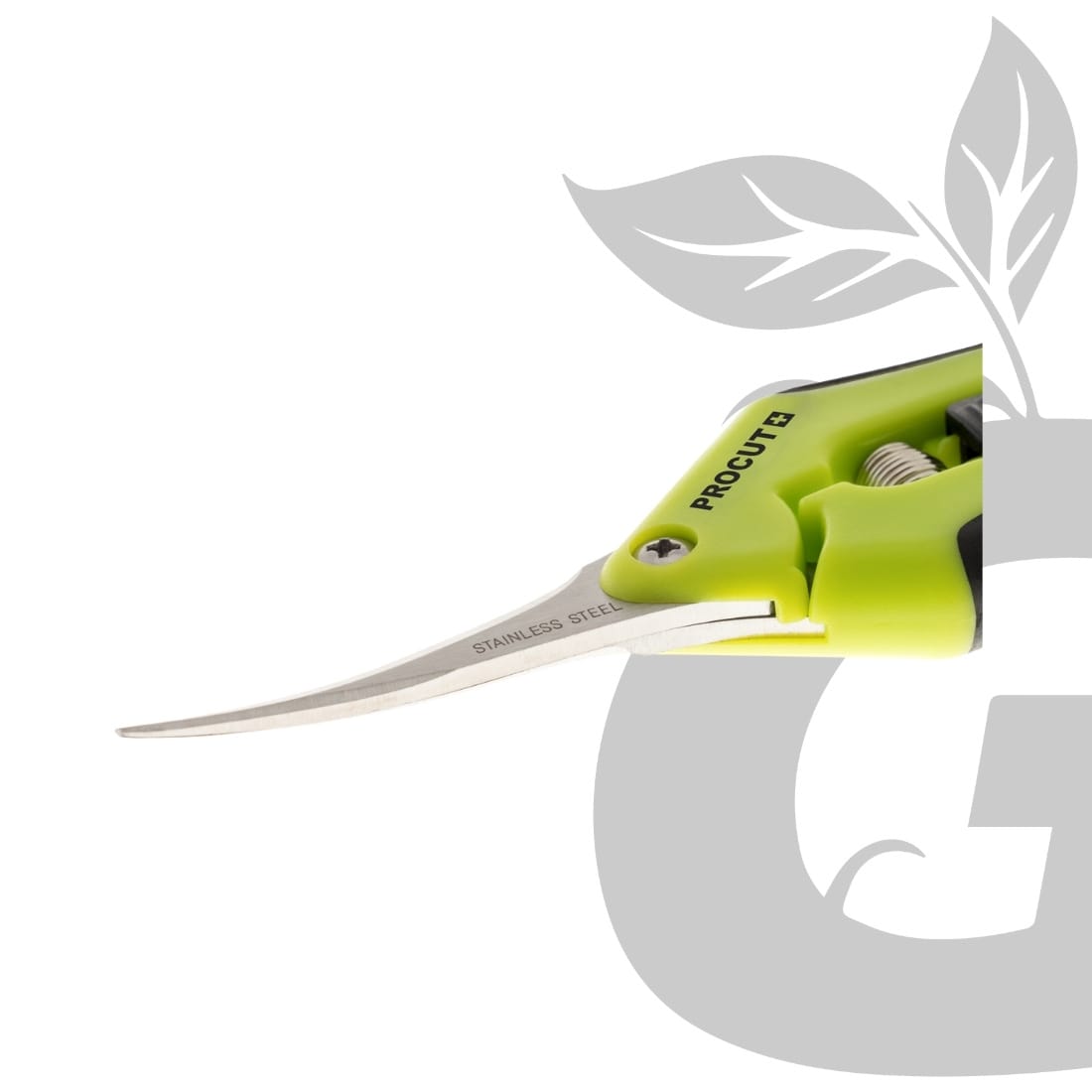 Poda como un profesional con las tijeras curvas ProCut. Su diseño ergonómico y hojas de acero inoxidable permiten acceder fácilmente a zonas difíciles, logrando cortes precisos sin dañar tus plantas. Perfectas para manicurado fino y retoques detallados en cultivos de interior o exterior.